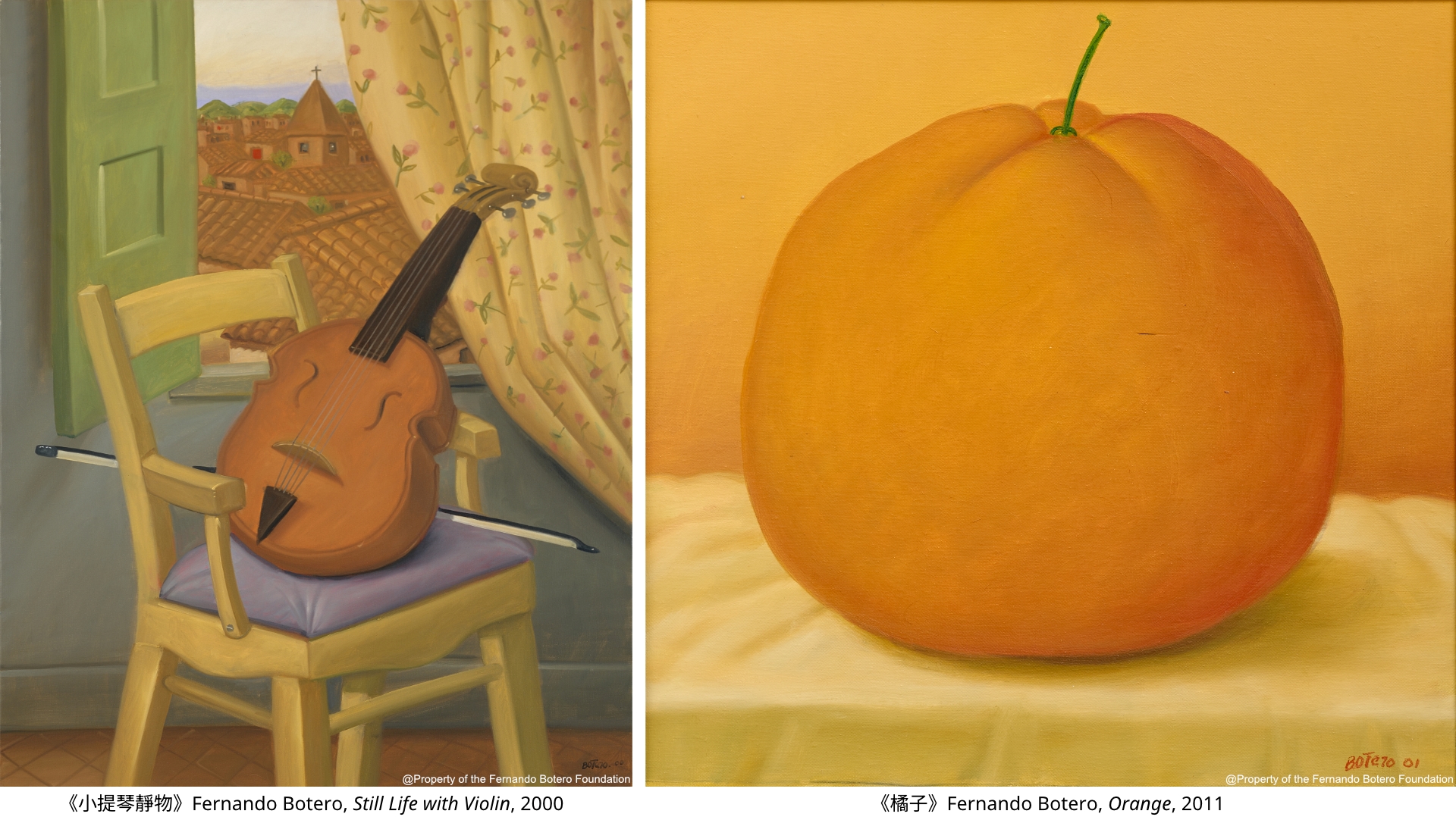 「最簡單的形體,往往是最難描繪」,波特羅的獨特風格源自於靜物創作,他年輕時所創作的曼陀林琴,透過刻意縮小音孔的方式,形成琴身彷彿向外膨脹的效果,讓他從此重新思考物體比例與體積的關係,奠定了經典的圓潤美學,自此,他的「體積」語言逐漸成形,貫穿於所有題材之中。