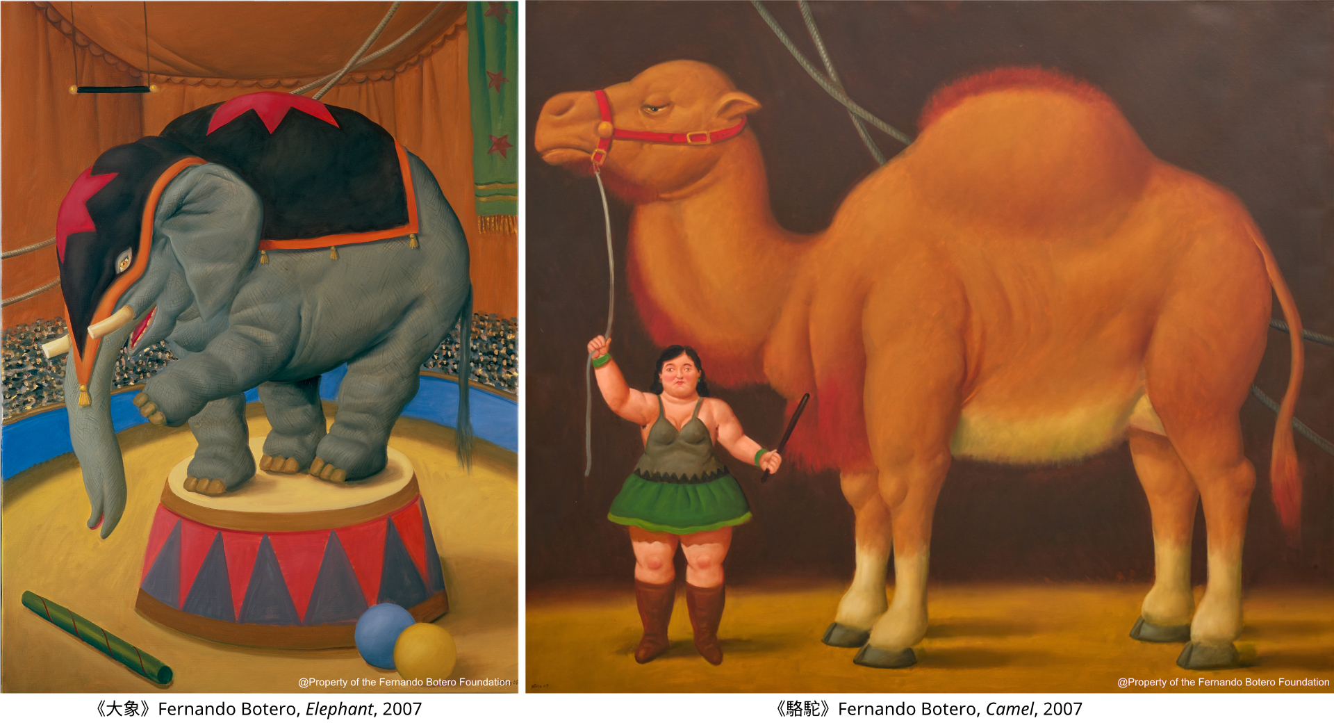 少年時期被送入鬥牛學校的短暫經驗,鬥牛場的戲劇性色彩與緊張氛圍影響了波特羅,促使他創作了一系列以鬥牛為題的水彩畫;在墨西哥邂逅的巡迴馬戲團,也成了他的繪畫題材之一,筆下的空中飛人、小丑表演者雖動感十足,卻在鮮明存在中隱含小人物特有的憂鬱情感,使整個系列在歡愉之外,更增添內在的情感深度。