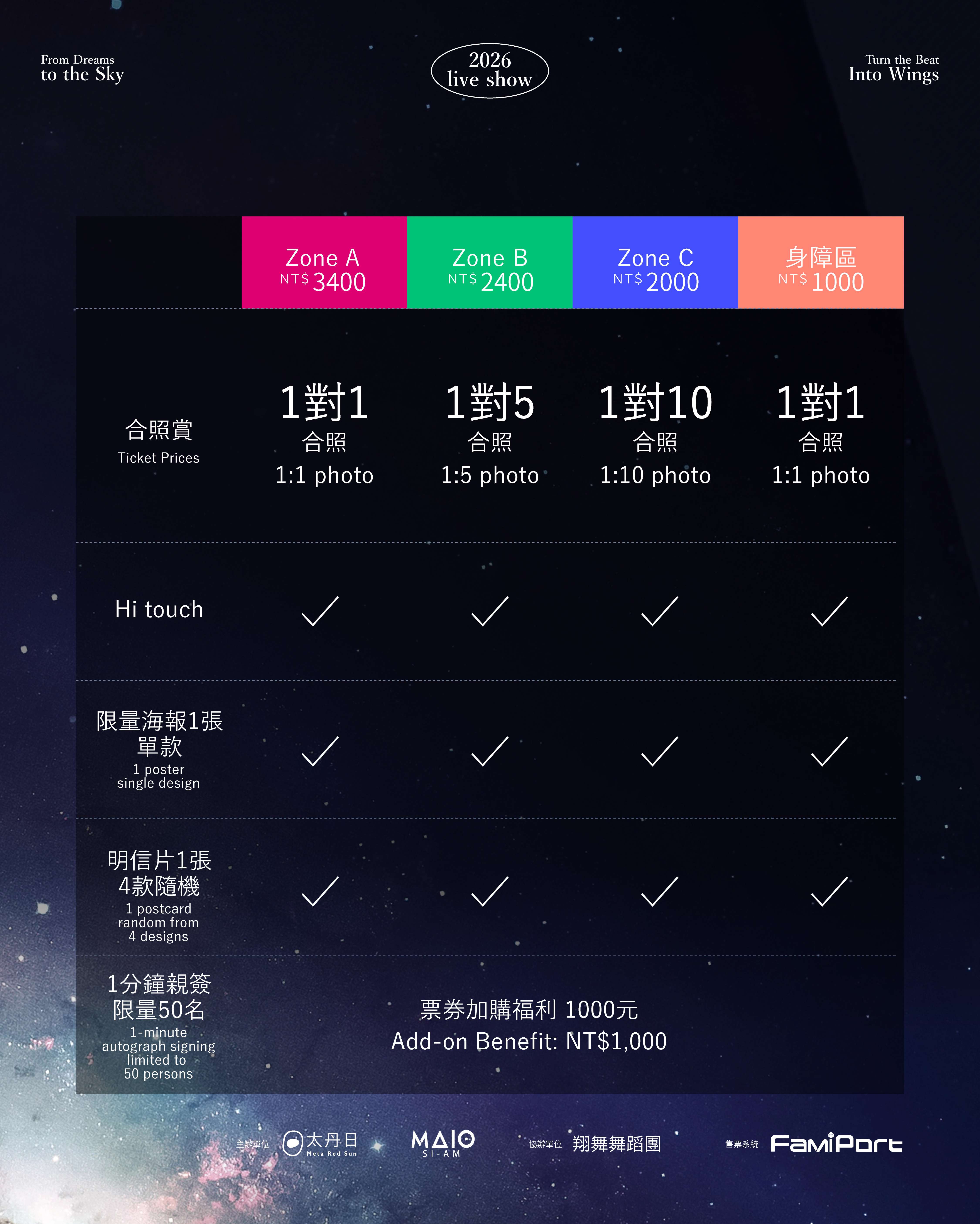 票券加購福利:1000元 (*需購買入場門票才可購買福利券,詳細福利券購票辦法請詳閱福利加價購 購票流程)