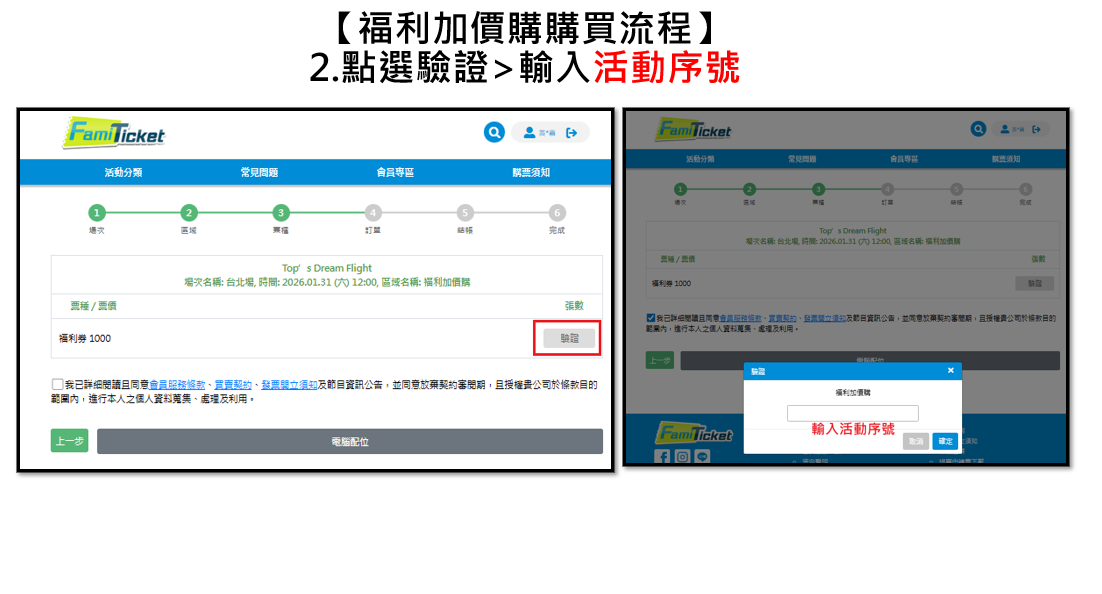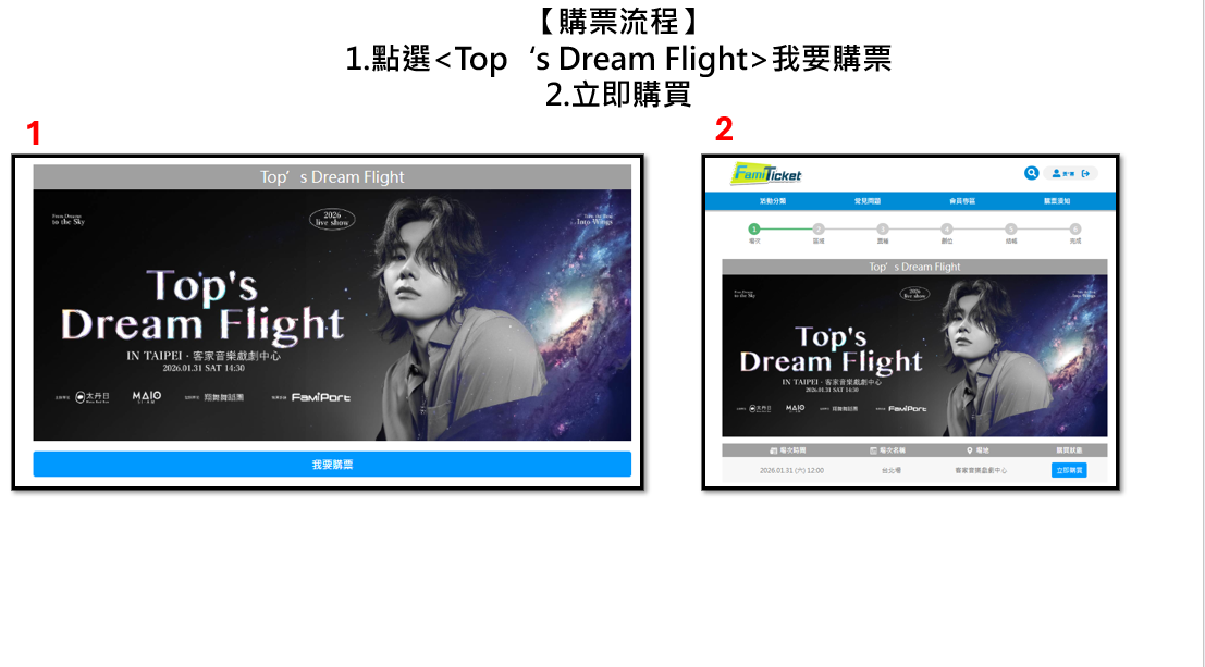 1.欲購票者,請先註冊並登入【FamiTicket 會員】始可開始購票,未完成註冊任證者,恕無法購票,建議購票前提早完成。