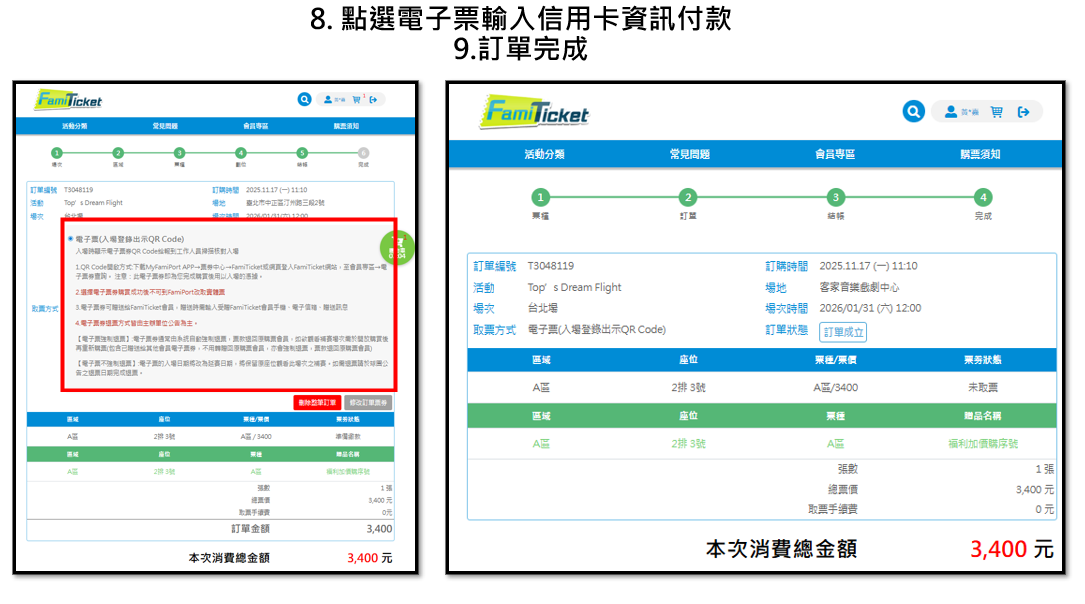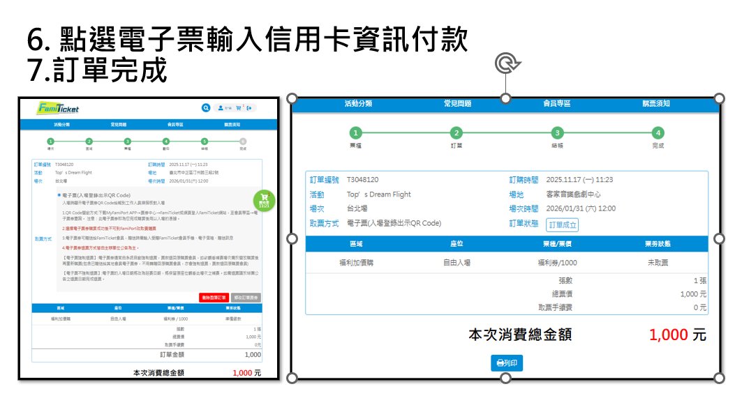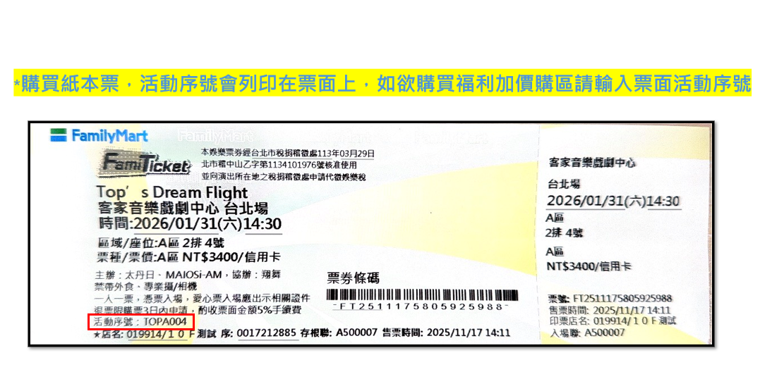 備註:請提供購買本票券時使用之信用卡號前四碼及後四碼