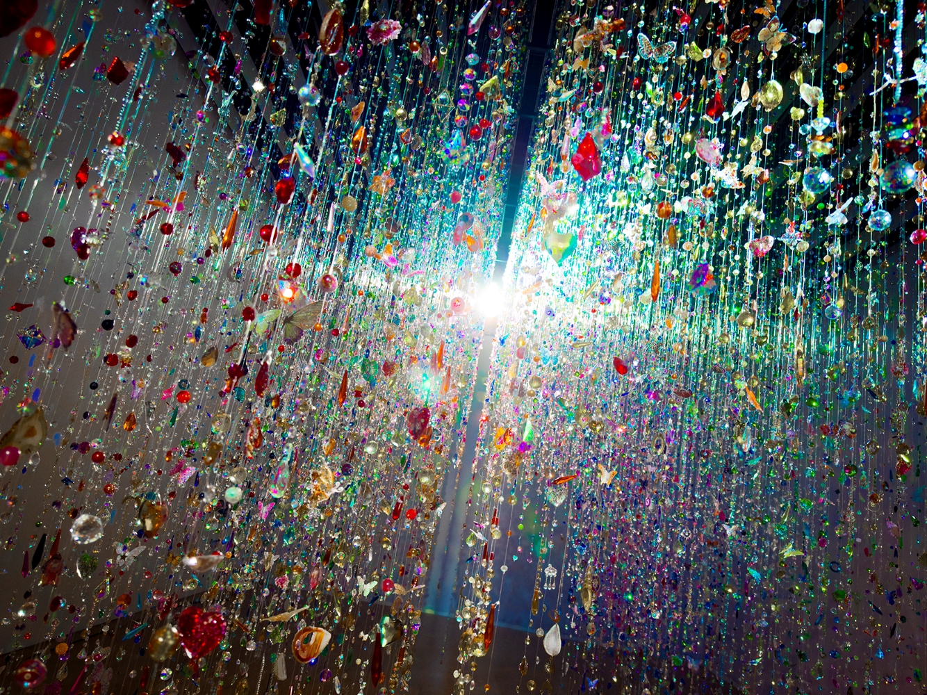 由2000條水晶串飾交織而成光與色彩的裝置藝術。蝴蝶、花朵、愛心與眼睛等圖案,不僅喚起少女珍藏如小寶石般的記憶,也象徵著視角從「被觀看者」轉變為「觀察者」的過程。作品同時向那些只能透過手工藝表達自我的女性致敬,閃爍的光芒宛如重現她們靜謐的熱情與祈禱。
