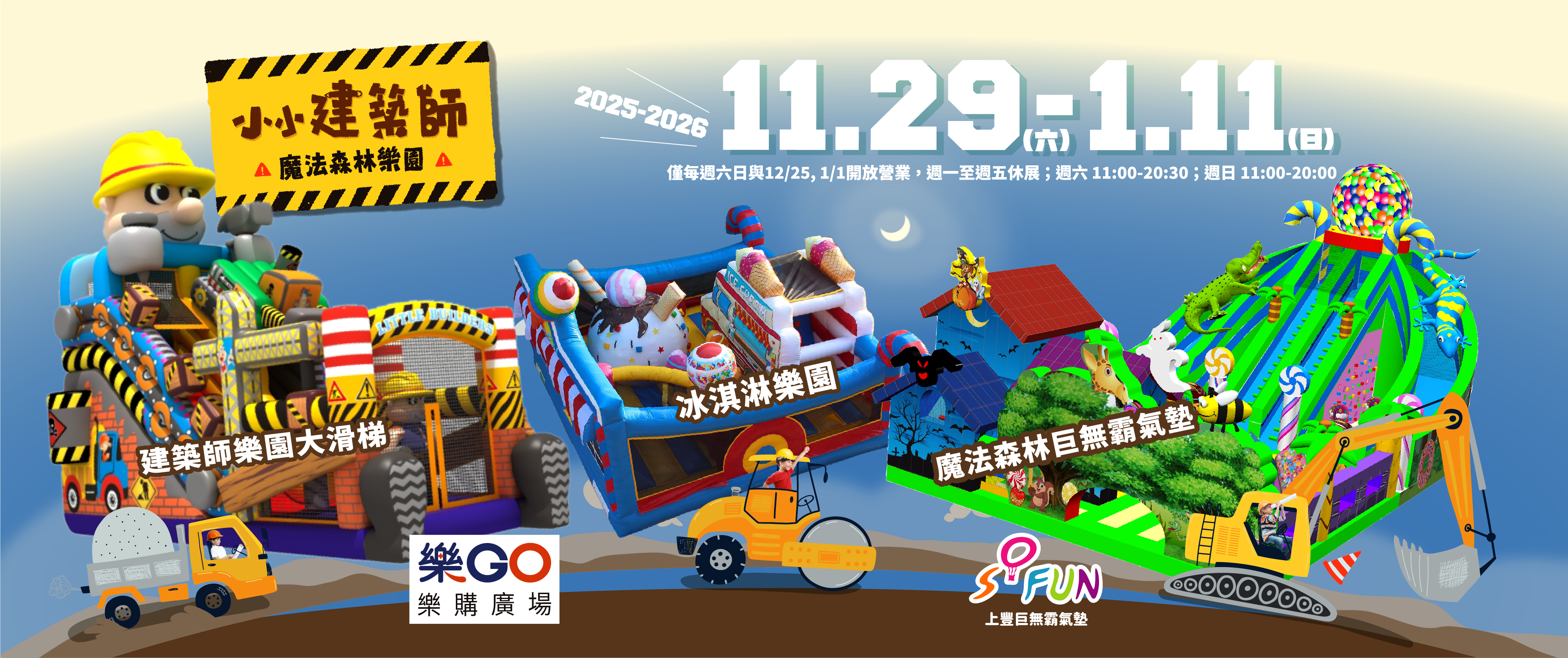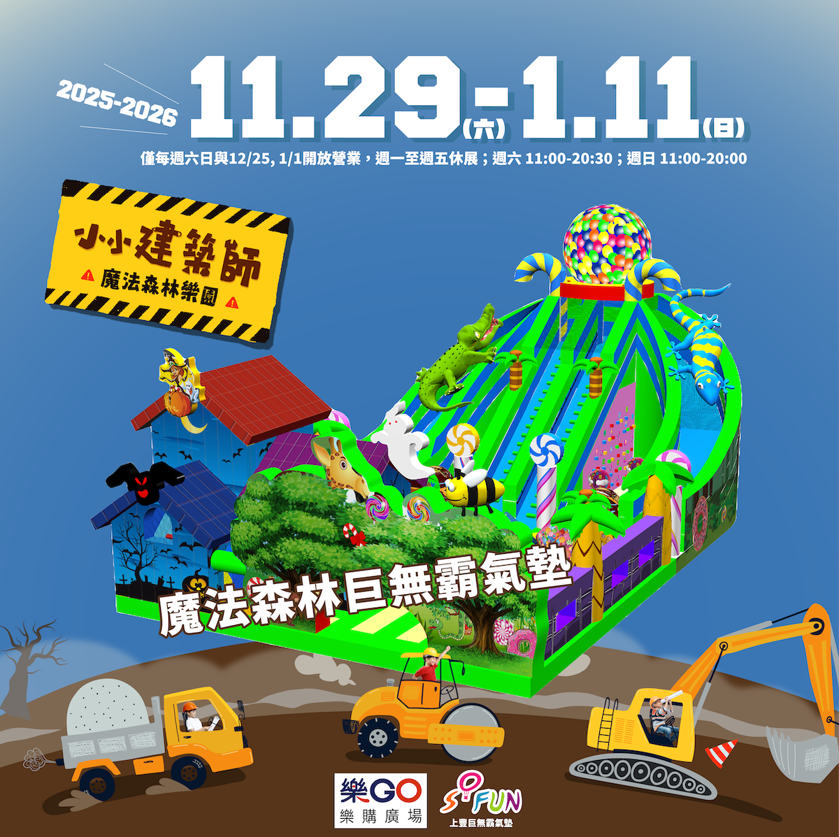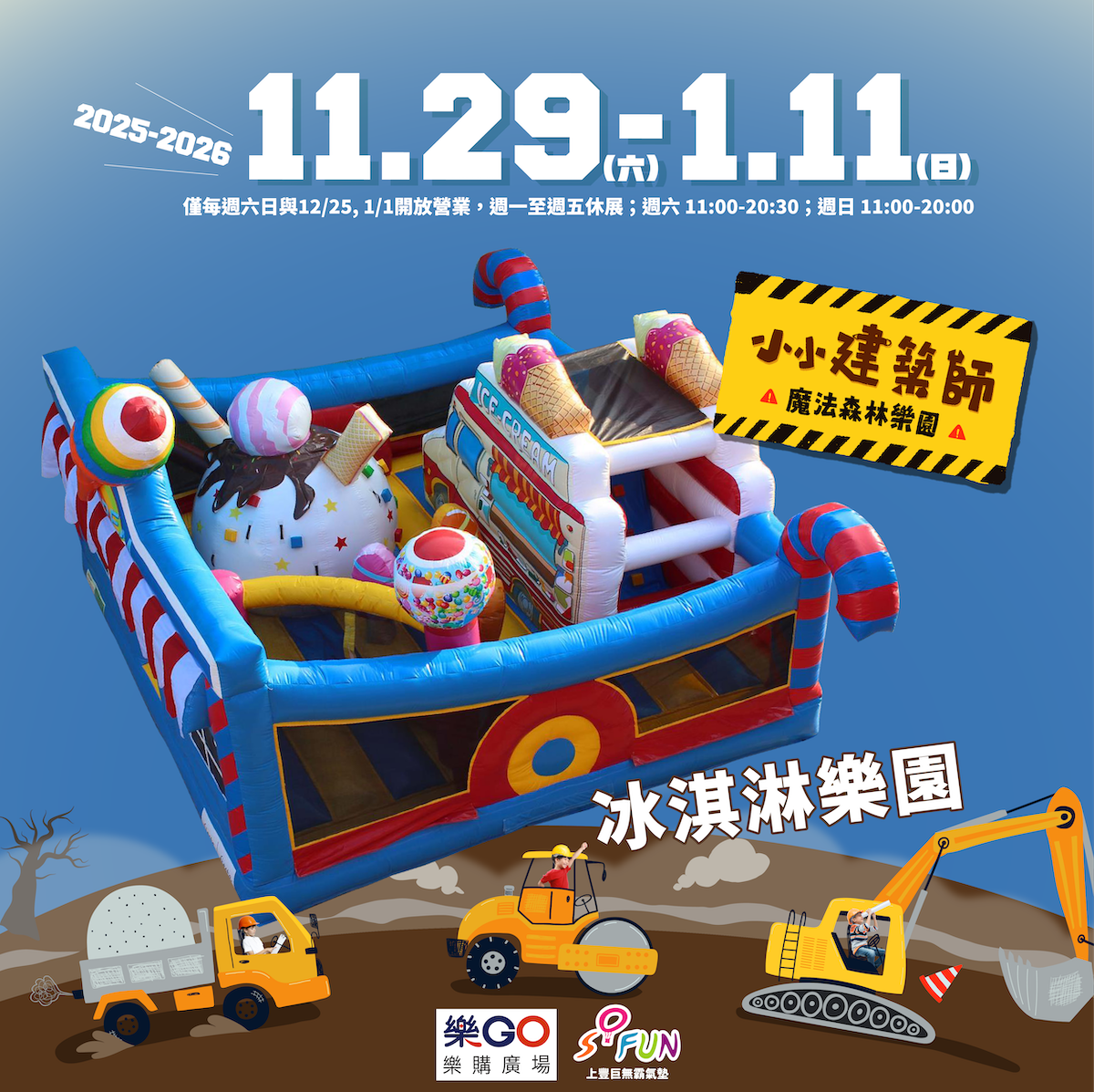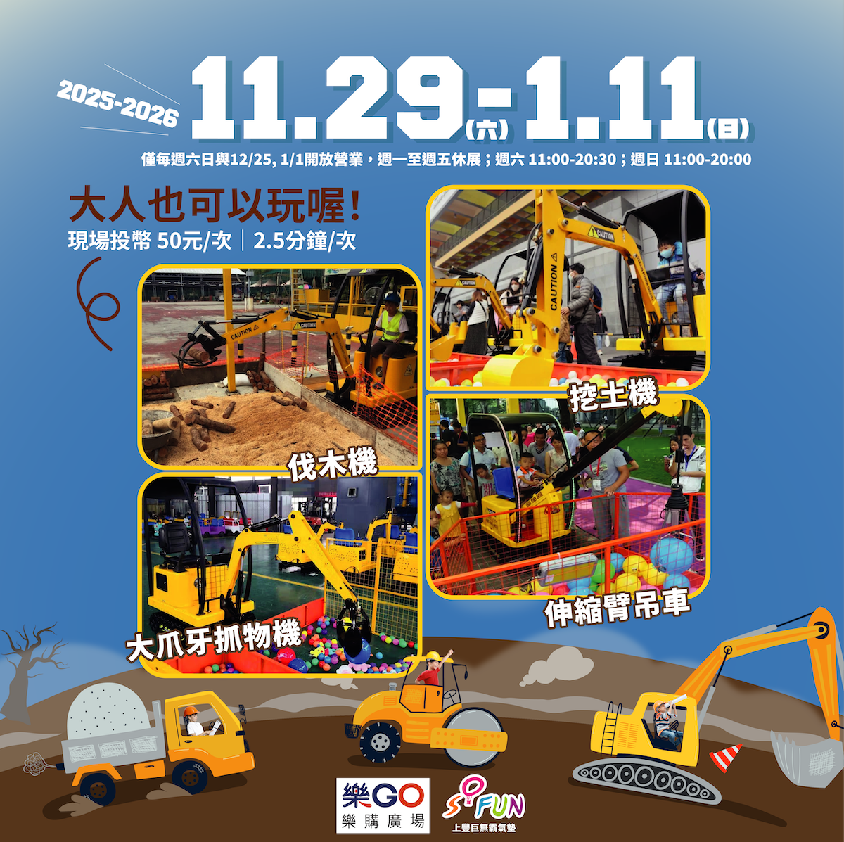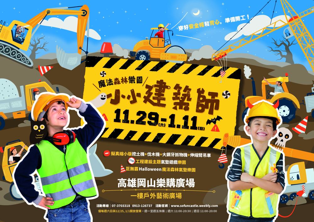 ✨好玩又樂趣的建築師體驗樂園來高雄樂購囉!不怕你不玩就怕你玩到人來瘋!超擬真縮小版的挖土機、伐木機、大鋼牙抓物機、伸縮臂吊車,仿真的建築機械外觀及操作功能,讓小朋友當場秒變建築大師,爸媽受不了也要參一腳體驗建築達人的工作樂趣。現場還有建築師樂園大滑梯、冰淇淋樂園、魔法糖果巨無霸氣墊,孩子FUN電爆汗開心瘋玩都不累。✨