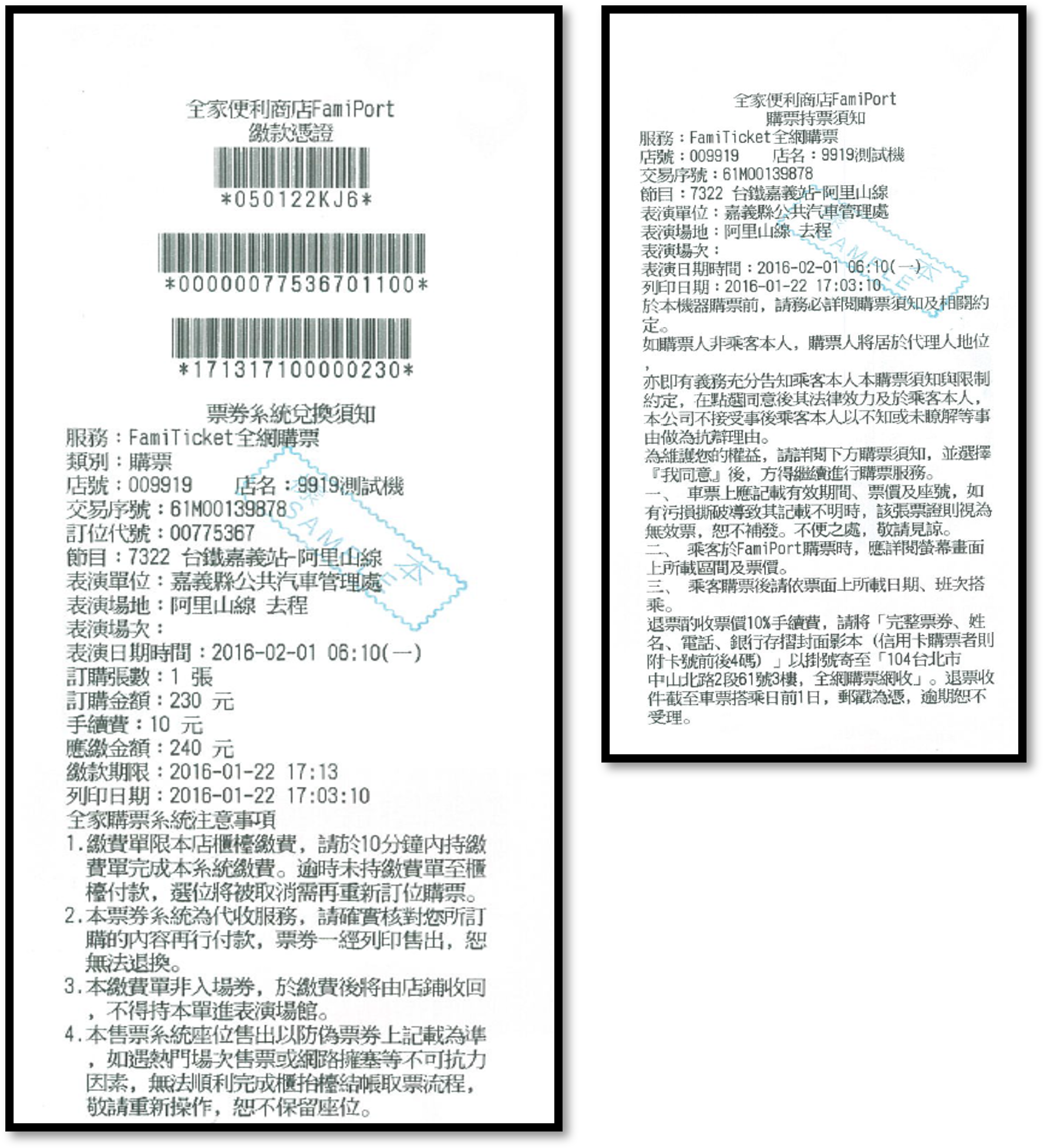 2. 票券視同有價證券,請妥善保存。如發生遺失、破損、燒毀或無法辨識等狀況,恕不補發。