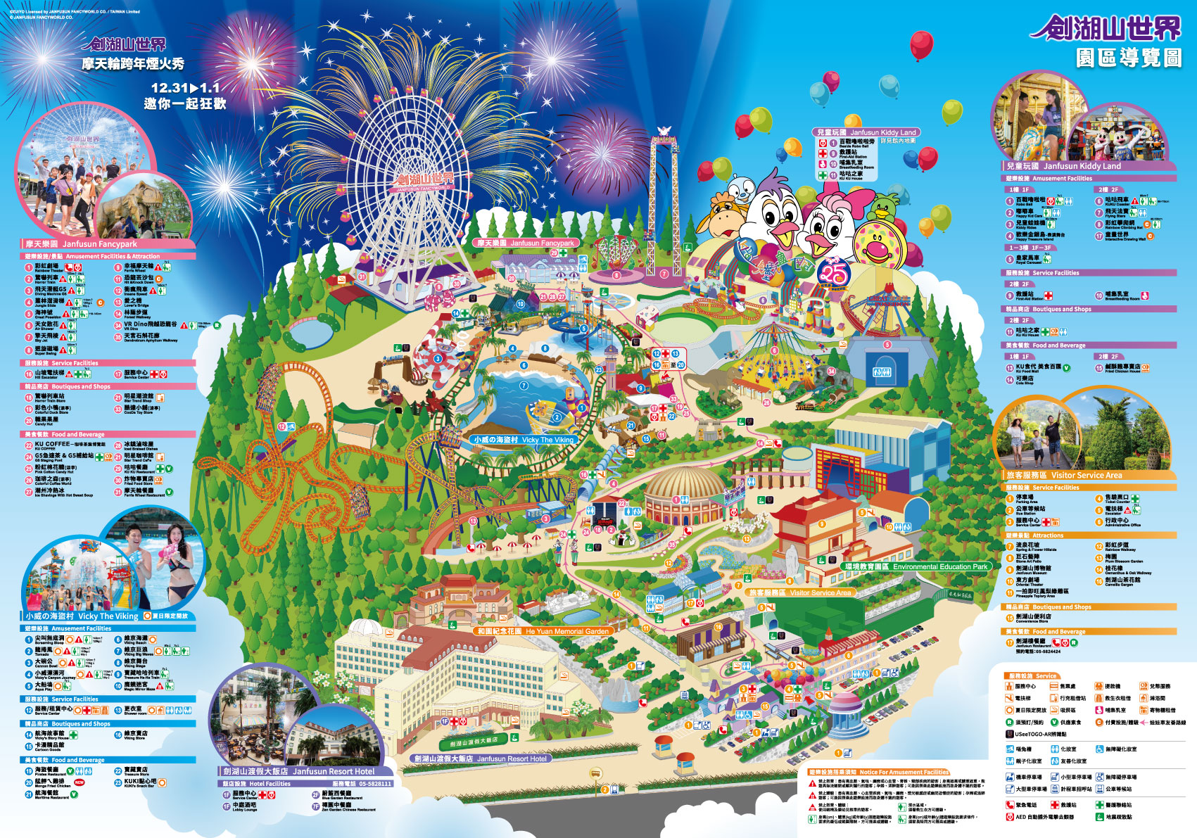 此外,園區在14萬棵喬灌木環繞下,除了熱鬧的遊具之外,也擁有寧靜的森林步道,以及不定期更新內容的國際表演等,動、靜兼備的環境,非常適合全家一起出遊。