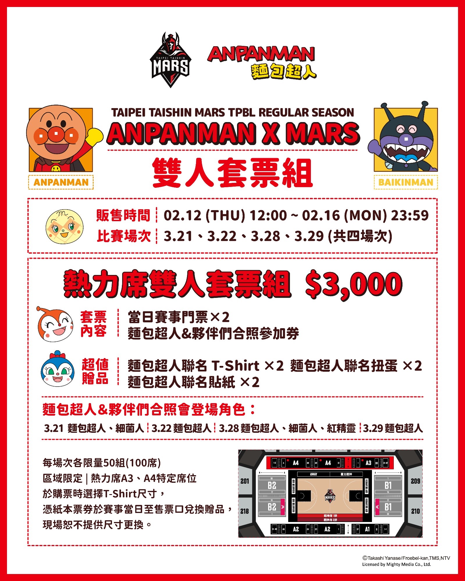 TPBL 2025-26臺北台新戰神×麵包超人雙人套票組