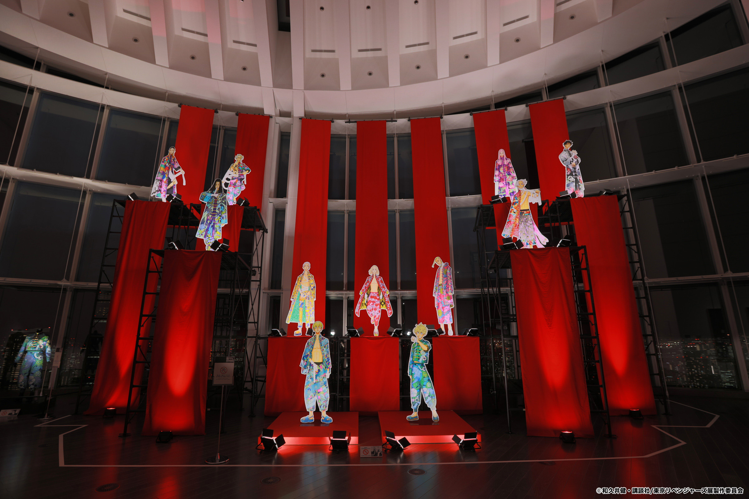 展場入口處設置本作品登場的11位角色等身立牌,可以享受和眾多角色一起拍攝紀念照片的樂趣。另外還有展示花垣武道(武稻)和佐野萬次郎(麥基)的豪華等身服裝。