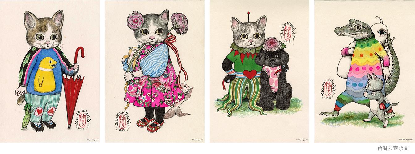 以全新展覽主題「奇幻動物森林」,樋口裕子老師特別為台灣繪製了新的主視覺與台灣限定票圖,主視覺更是融入了在台灣特有氣候下所生長的植物、台灣人的性格、台灣傳統花卉圖案等對台灣的印象,而老師筆下這些經典的動物角色們以「換上可愛的衣服,準備出發去台灣!」的意象呈現於台灣站限定票券設計中。