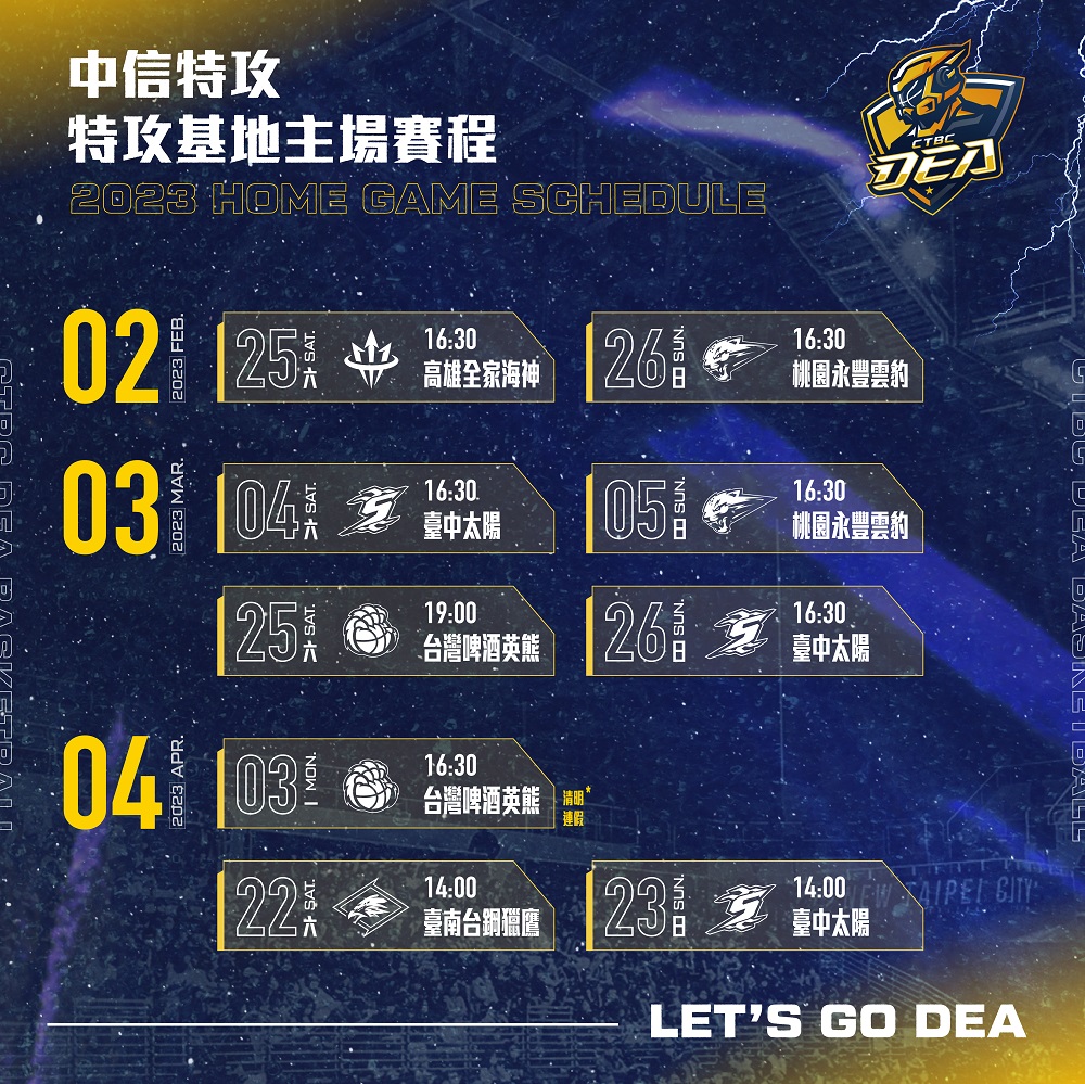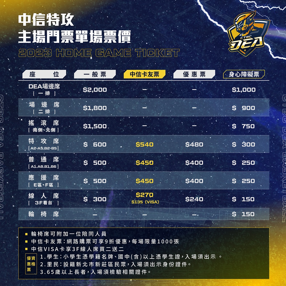 ⚡️本次售票將販售2~4月份新北中信特攻主場例行賽事(共9場)
