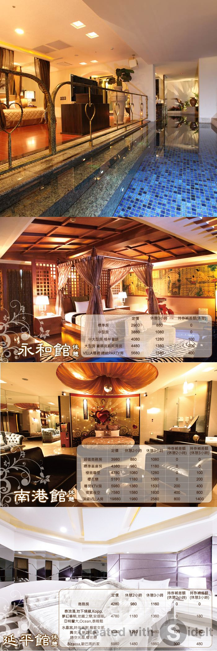 1.可雙人使用南港/延平/中和/永和館$1200元以下房型休憩乙次