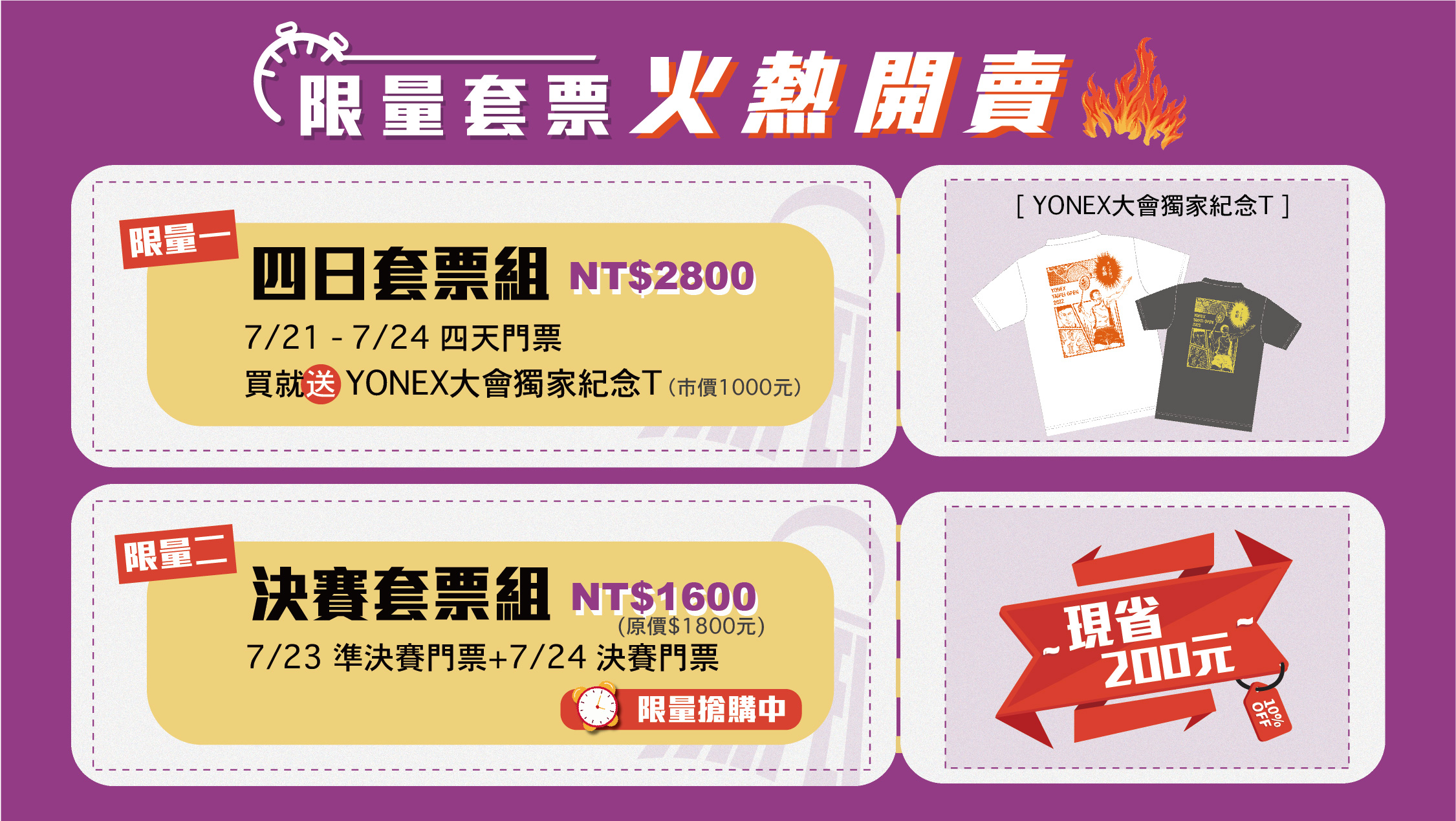 含7/21-7/24四天門票 加碼送 2022YONEX獨家紀念T