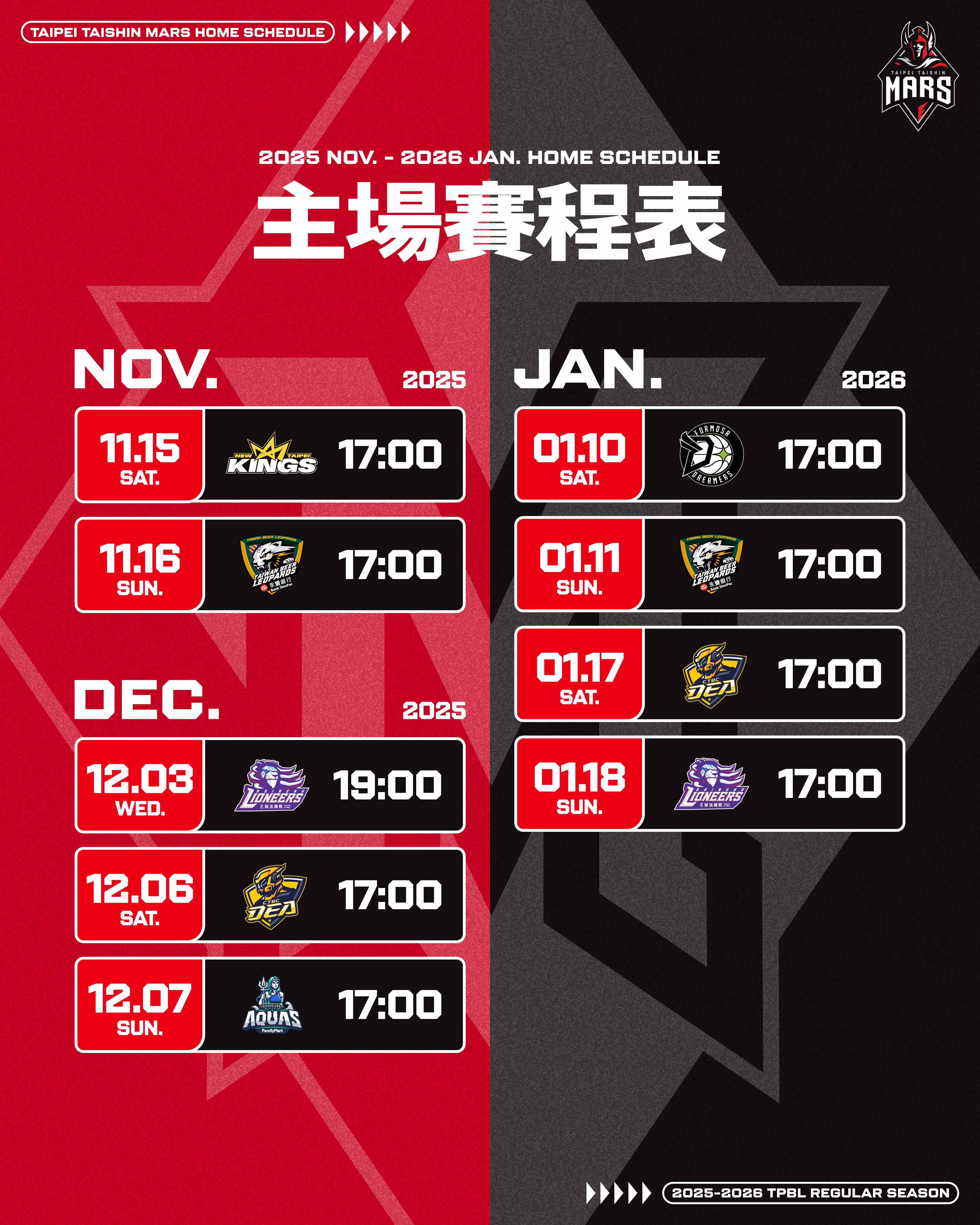 2025-26賽季 臺北台新戰神11-1月主場例行賽事