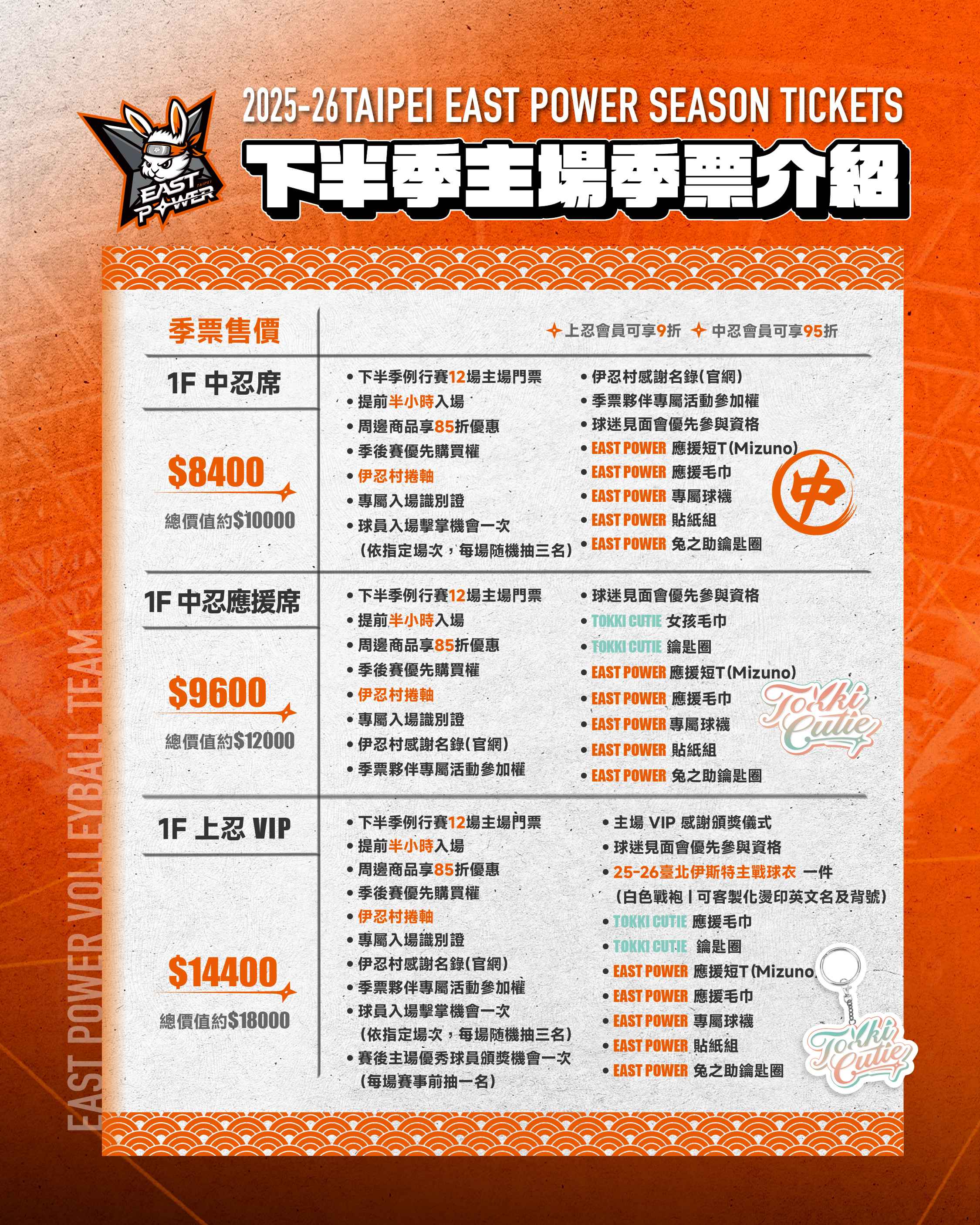 【購票方式】季票權益適用於TPVL 2025-26 臺北伊斯特主場例行賽。