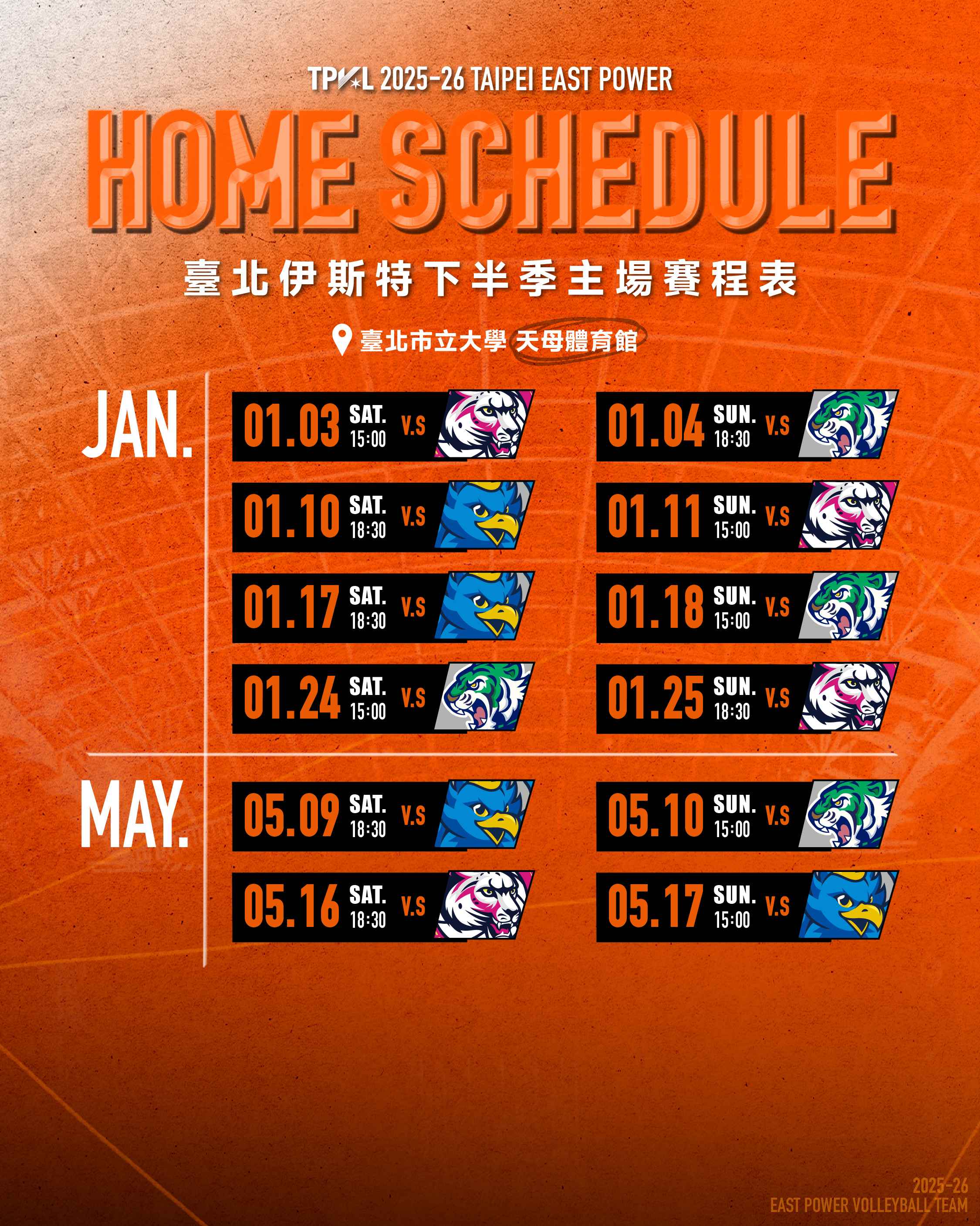 售票場次:TPVL 2025-26賽季 臺北伊斯特12場主場例行賽下半季季票